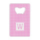 Abrebotellas De Tarjeta De Crédito Gingham Plaid Monograma rosa y blanco