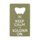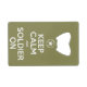 Abrebotellas De Tarjeta De Crédito "Guarde la calma y al soldado en" el abrebotellas