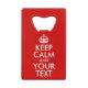 Abrebotellas De Tarjeta De Crédito Mantener la calma y el texto