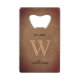 Abrebotellas De Tarjeta De Crédito Monograma cuero marrón rústico elegante nombre de
