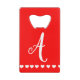 Abrebotellas De Tarjeta De Crédito Monograma rojo y blanco inicial