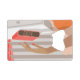 Abrebotellas De Tarjeta De Crédito Mujeres presionando con la mano el botón de snooze