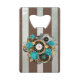 Abrebotellas De Tarjeta De Crédito Reloj de vapor y Rosas turquesa a rayas