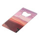 Diseño artístico abstracto de puesta de sol en tonos rosa, lila, negro, rojo y melocotón.
