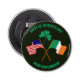 El orgulloso abridor irlandés de botellas en el Día de San Patricio es un producto para celebrar el patrimonio irlandés. Puedes ofrecerlo como regalo en la celebración del Día de San Patricio o usarlo para mostrar lo festivo y orgulloso que te sientes. El botón tiene un par de rocas de champú y sombreros superiores con colores asociados con Irlanda y Estados Unidos. Puede cambiar el texto y elegir otro color de fondo.