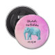 Un favor de cumpleaños / abrebotellas conmemorativas. Impresión pintada a mano de un elefante azul claro hecho en acuarelas. Esta imagen tiene las flores de pintura de acuarela clásicas, donde la pintura se esparce en patrones aleatorios, lo que hace que las acuarelas sean tan únicas. Personalice y personalizar con sus propios detalles de eventos.
