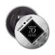 ¡Celebre el 70 aniversario del boda de platino con este elegante abrebotellas! Las elegantes letras en blanco y negro con confeti hexagonal sobre el fondo de un Relieve metalizado platino le dan un toque memorable a esta ocasión especial y un hito extraordinario. Personaliza con los nombres de la pareja y años de matrimonio. Diseño © W.H. Sim, todos los derechos reservados. Ver más en zazzle.com/expressionsoccasions