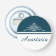 Elegante diseño floral con decoración de nombre y rayas de fondo azul y blanco