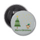Un mono lindo vestido con un gorra elfo de Navidades verdes y rojos junto a un árbol de Navidad en una noche estrellada. Feliz Navidad!