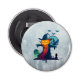 Un abrebotellas redondeadas con un ilustracion de halloween fresco. Fijado sobre un fondo gris. Un gran espantapájaros con la cabeza de calabaza, con un gorra de brujas. Tiene una sonrisa amenazadora con túnicas hechas jirones y está parado en un cementerio con un grito de cuervo en el brazo. Los murciélagos que vuelan a lo lejos, una luna llena en el fondo y un búho solitario con ojos brillantes se sientan en una lápida.