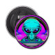 Arte psicodélico neón que representa un platillo alienígena y volador. Contenido generativo.