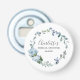 Favor perfecto para la fiesta de despedida de soltera. Este abrebotellas es bonito y práctico. Tus invitados recordarán a menudo la diversión que tuvieron en tu fiesta. Flores y follaje azul polvoriento crean una bonita corona botánica. Rodea el nombre de la futura novia. La fiesta de despedida de soltera y la fecha siguen. Esta servilleta de fiesta de despedida de soltera es parte de la colección Floral Azul Polvoriento. ¡Encontrarás invitaciones y suministros para fiestas para que la planificación de tu fiesta de despedida de soltera sea divertida y fácil!