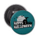 Feliz ilustracion de diseño de texto de Halloween con decoración de cementerios y murciélagos en luna llena sobre fondo azul grunge