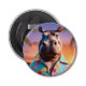 Gracioso hipopótamo usando una camisa hawaiana en una hermosa playa.
