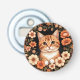 Adorable gatito ginger sentado dentro de una impresionante frontera floral circular con flores, creando una composición elegante y alegre que representa la inocencia, la belleza y el calor de la naturaleza.