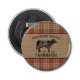 Un bello abrebotellas de botón de temática rústica con su nombre familiar y "casa de campo", rancho, casa de campo, granjas u otro texto deseado y una fecha establecida. Este diseño único y personalizado presenta obras de arte hechas a mano de una vaca lechera en un soporte de impresión estilo burlap y está rodeado por un pavimento de color rojo y caqui francés. Para ver más diseños como este, siéntase libre de visitar mi tienda aquí en "Zazzle.com/Rustic_Charm". ¡Gracias.