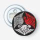 Apertura de botellas en un patrón clásico japonés de kimono de grúas estilizadas, dispuestas en un patrón de hexágonos, en rojo profundo, gris claro y medio / gris, sobre un fondo negro