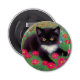 Botella Abierto con un gato Gustav Klimt tuxedo! Este bonito gatito blanco y negro se encuentra en un campo de flores rojas, azules, blancas y naranjas. ¡Un regalo increíble para los amantes del gato y del arte austriaco!