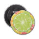 El abrebotellas presenta una gran parte de una cal sobre un collage de limones, limas, naranjas y rodajas de pomelo. Un divertido añadido a la decoración de su casa de verano o como regalo.