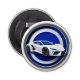 Un auto deportivo blanco elegante y elegante con emblema metálico, situado en un vibrante fondo azul, enfatizando la velocidad, el lujo y la moderna estética del automóvil.