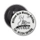 El abrebotellas de la tienda de carnicería con el nombre de la empresa y el número de teléfono que elija. El ilustracion muestra una salchicha en un tenedor.