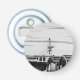 Abrebotellas magnetizado foto blanco y negro de un barco pesquero con jaulas a langostas, título: “La puesta en agua”, Iles-de-la-Madeleine, Quebec, el Canadá. María-Eva LaBadie fotografió