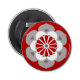 Abridor japonés de botellas de diseño mandala que representa una flor de loto estilizada, simbolizando pureza, despertar espiritual y fidelidad - flor en gris plateado / gris, rojo y blanco, sobre un fondo rojo oscuro de China