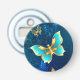 Oro volador, mariposa de joyas sobre fondo textural azul. Diseño con mariposas.