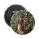 Destacado delante de las grandes hojas verdes está un Meerkat de guardia con mariposas azules.