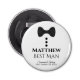 Este tierno abridor de botellas hace un maravilloso regalo o favor para tu Mejor Hombre. Presenta un diseño lindo y divertido con corbata negra y tres botones negros que se parecen a un esmoquin. El texto dice "Mejor hombre" con un lugar para su nombre, los nombres de la pareja y la fecha del boda. Gran manera de agradecerle por ser parte de su fiesta de bodas.