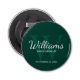 Añada un toque personal a su boda con el abridor personalizado de frascos de los padrones. Este abrebotellas presenta el nombre personalizado de groomsman en estilo de letra clásico de escritura blanca con detalles bodas en estilo de letra serif clásico blanco y monograma en estilo de fuente serif clásico de color verde esmeralda claro como fondo, sobre fondo verde esmeralda. También perfecto para el mejor hombre, padre de la novia, portador de anillo y más.