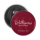 Añada un toque personal a su boda con el abridor personalizado de frascos de los padrones. Este abrebotellas presenta el nombre personalizado de groomsman en estilo de letra blanco clásico con detalles bodas en estilo de fuente serif clásico blanco y monograma en estilo de fuente serif rojo burdeos claro estilo de fuente serif clásico como fondo, sobre fondo rojo burdeos. También perfecto para el mejor hombre, padre de la novia, portador de anillo y más.