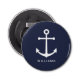 Apertura de botellas Minimalistas modernas de botón náutico con ancla blanca con nombre personalizado en blanco moderno sans serif estilo de letra sobre fondo azul marino. Perfecto como regalo para papá, padrinos, regalo de reunión familiar y más.
