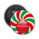 Alegre ornamento rojo con el texto de Feliz Navidad contra un fondo de menta de menta.