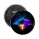 Luciérnagas mecánicas antiguas con bombilla de luz y finas alas brillan naranja, violeta, turquesa sobre fondo negro. Estilo Steampunk.