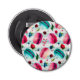 Abridor de botellas con un patrón acuarela de macarones dulces y deliciosos franceses revoloteando por todos lados. acuarelas de bonito: rosa, rojo y verde verde azulado. Bayas al azar flotando también incluyendo fresas, cerezas y arándanos. Fresco y delicioso. Se coloca sobre un fondo verde de puntos de polka. Tiene un aire de tienda de refrescos.