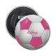Abrebotellas Pelota de fútbol de personalizable rosa y blanca