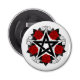 Pentagrama negro con estampado, decorado con rosas rojas florecientes con hojas sobre fondo blanco. Estilo tatuaje.