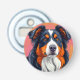 Una impresionante ilustración digital que presenta un perro tricolor con pelo negro, blanco y naranja sobre un fondo vibrante.