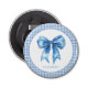 Este tierno abrebotellas redondas presenta un fondo de gingham azul y blanco con una proa azul a juego. Personaliza con tu elección de nombre o texto especial.