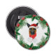 El abridor de botellas Pine Branches, Navidades alemanes de pastores, presenta una hermosa acuarela de un pastor alemán con un Sombrero rojo y una bufanda de Navidades rojos, Navidades rojos y verdes con ramas de pino.