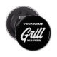 Personalizado Regalo de apertura de botellas de cerveza Grill Master para el chef de barbacoa. Diseño de tipografía de guiones en blanco y negro de Guay. Divertido verano Idea de regalo de cumpleaños para cocinero, papá, esposo, tío, hermano, abuelo, jubilado, jefe, compañero de trabajo, colega, rey asador, etc. Personalizar con un nombre o monograma. Regalos para hombres a los que les encanta asar. Espalda magnética. Pegamento a la nevera y otros objetos metalizado.