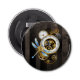 Diales antiguos con artes de oro y latón, decorados con libélula mecánica sobre fondo marrón, rayado. Steampunk.