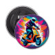 Un ilustracion de arte vibrante que muestra a un individuo montando una motocicleta naranja, rodeado de vibrantes toques de colores vivos y movimiento. Captura temas de energía, creatividad y estilo de vida moderno.