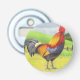 Un dibujo a lápiz de color de un gallo de colores adorna este abrebotellas.