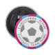 Su propio nombre y el equipo de fútbol que apoya en un abrebotellas. El tema es de color claro y azul.