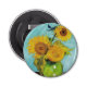 Sunflowers (1888) Vincent van Gogh. Todavía la vida en un fondo azul. Un ramo luminoso de flores de girasol se levanta en un jarrón. Reproducción de obras famosas de imágenes artísticas de dominio público.
