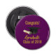 Un abrebotellas con un diseño de moda ilustrado con un tapón de graduación y un diploma. El texto dice: Congrats Graduate Class of 2018 (se puede personalizar el año). Emplazado sobre un fondo violeta de bonito con letras de color dorado. Sencillo, moderno y elegante.