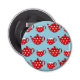 El modelo ilustrado lindo de una tetera y de una taza de té manchadas rojas y blancas fijó en un fondo azul claro.
