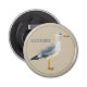 This coastal inspired button bottle opener features a beautiful watercolor seagull in soft shades of blue and grey on a background of sand beige. Personalize with your choice of name or special text. Great for gift tags and party favor bags.